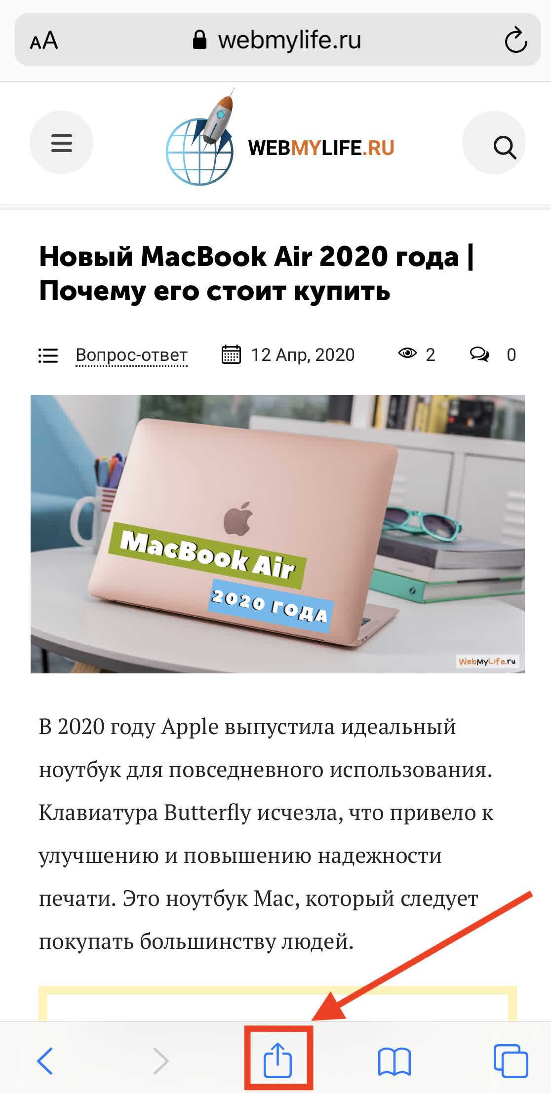 - Нажмите в нижней панели Safari значок стрелки.