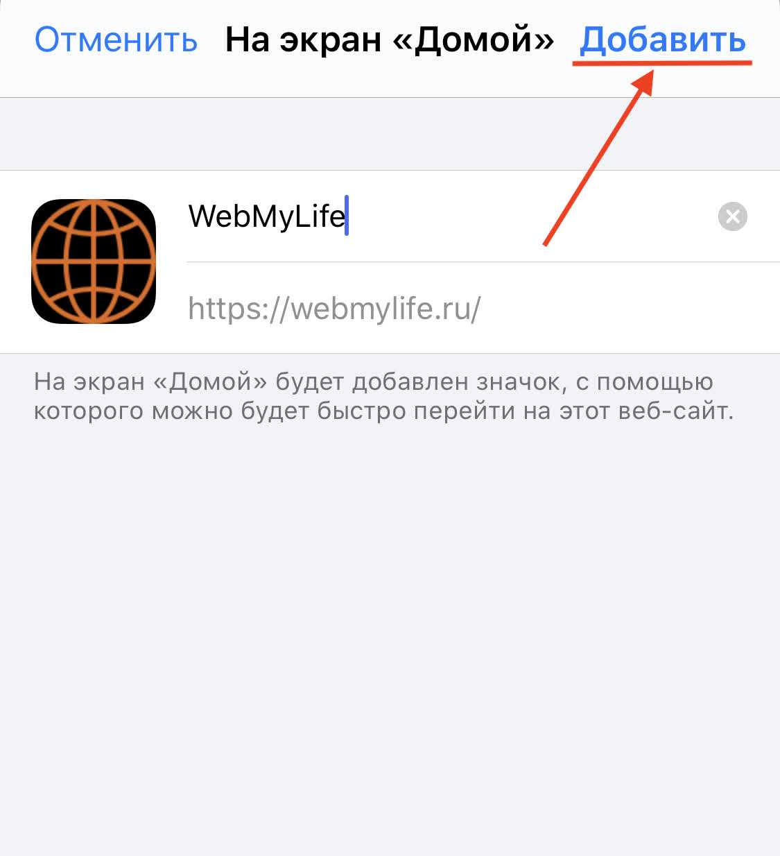 - Нажмите «Добавить на экран „Домой“»