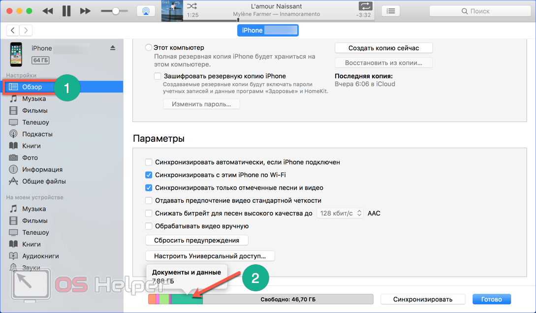 - Пользуйтесь синхронизацией телефона с iTunes, чтобы освободить память на айфоне — это эффективно работает, поскольку при синхронизации через ПК все «мусорные» рабочие файлы передаются на компьютер, автоматически удаляясь с гаджета.