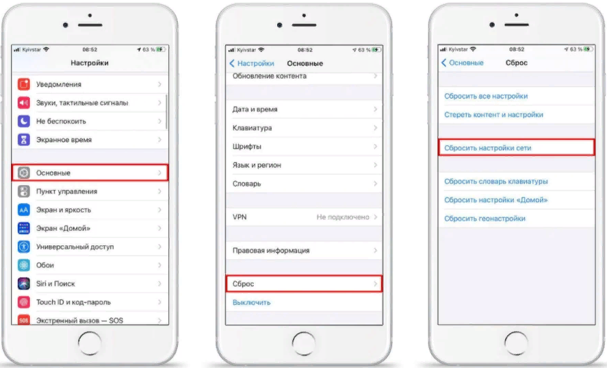 Иногда сбой в настройках подключения к сети бывает причиной того, что iPhone застывает на подсчете оставшегося времени
