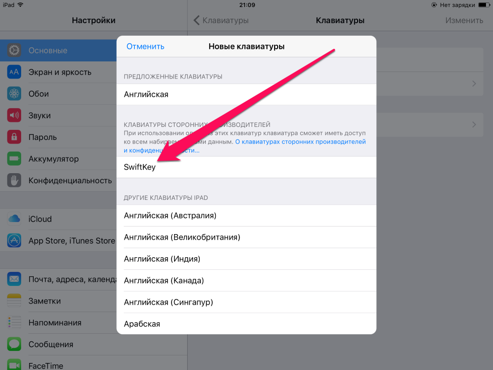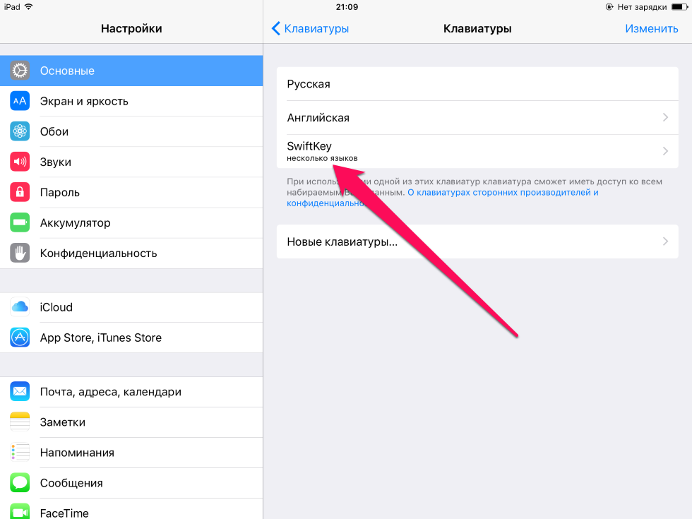 Выберите «Настройки» > «Основные» > «Клавиатура». Коснитесь «Клавиатуры» и выполните одно из указанных ниже действий. Добавление клавиатуры. Коснитесь «Новые клавиатуры» и выберите нужную клавиатуру из списка.
