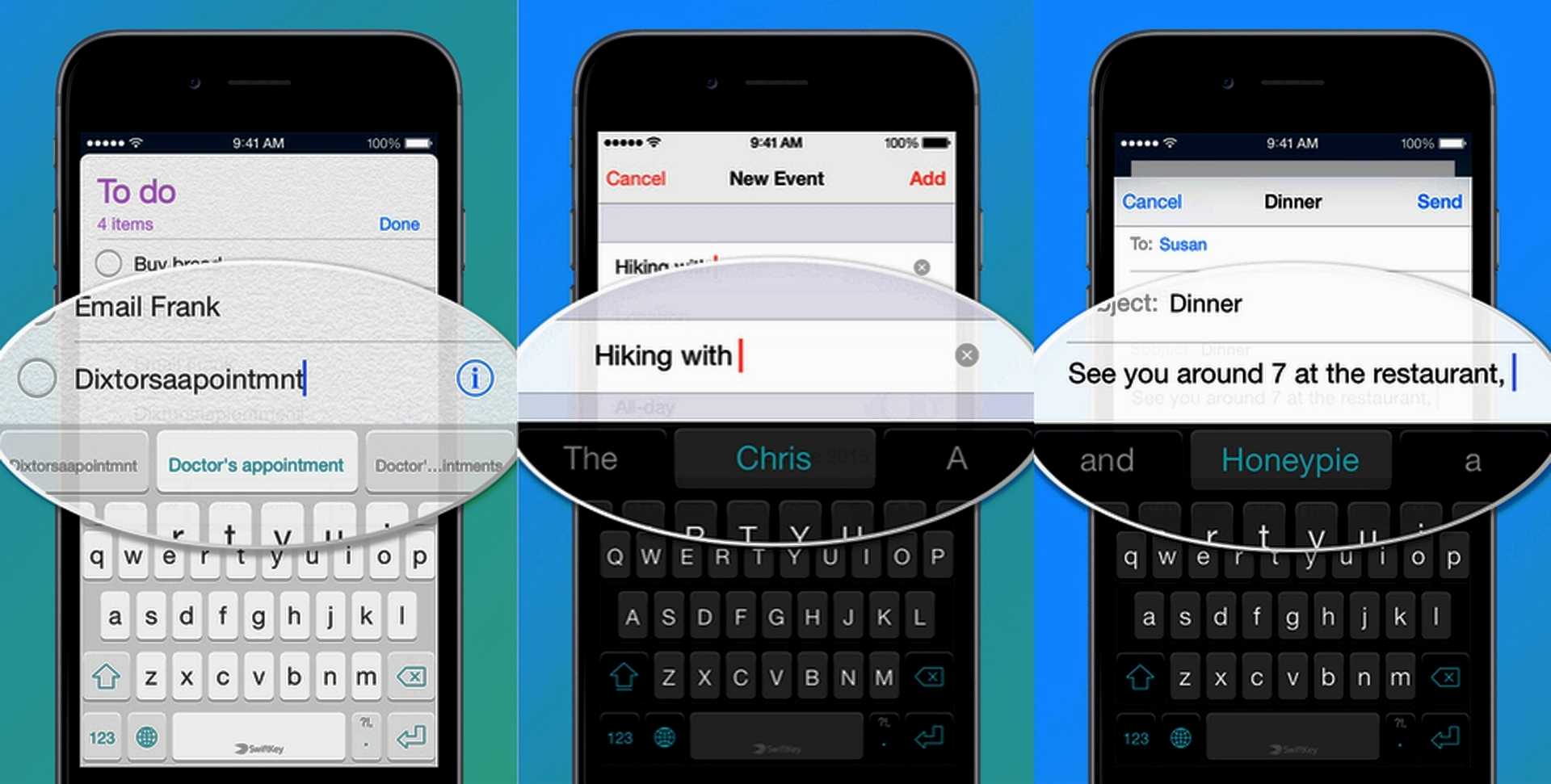 Считается одной из самых умных клавиатур для гаджетов на Android, используется система предиктивного ввода текста и автокоррекция на 60 языках. Работа SwiftKey на iOS 8 ничем не отличается, с момента установки приложения на iPhone или iPad, утилита запоминает все, что вводиться, и автоматически предлагает наиболее часто используемы слова или фразы. Наиболее популярным комментарием является то, что у пользователей складывается впечатление, будто клавиатура «угадывает» их мысли и правильно предлагает целые предложения с начала ввода первых слов.