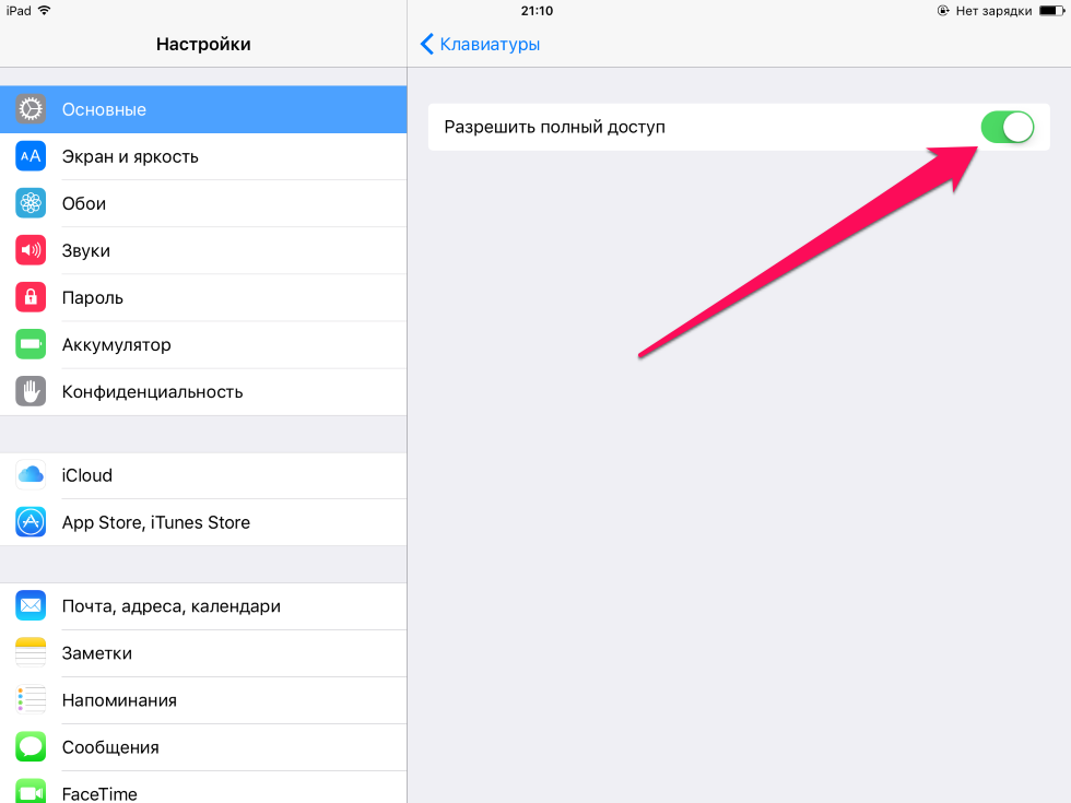 Откройте «Настройки» > «Универсальный доступ» > «Клавиатуры», коснитесь «Полный клавиатурный доступ», затем включите параметр «Полный клавиатурный доступ». iPad можно управлять с помощью клавиатурных команд.