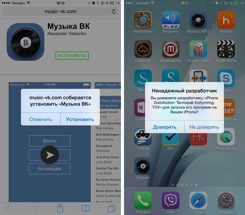 - Система запросит разрешение на установку программы. Даем согласие и ждем пока файл установится на айфон.