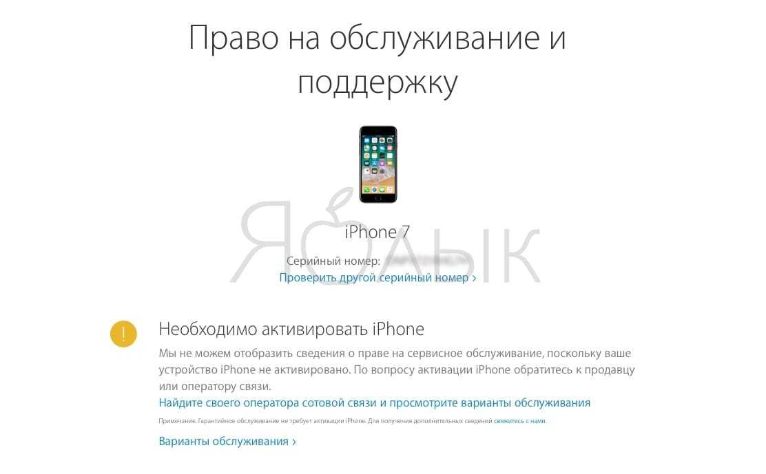 Право на обслуживание и ремонт: может применяться закон о защите прав потребителей. Данное сообщение говорит о том, что iPhone был активирован более года назад. К сожалению, в этом случае Apple не приводит информации о дате регистрации устройства в системе.