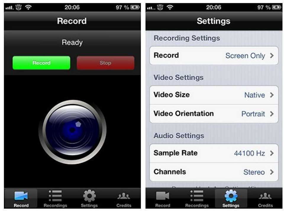Минус программы — необходимость заплатить $2.99 разработчикам. Зато среди плюсов есть поддержка платформ, начиная с iOS 7, на которых работают даже такие старые модели, как iPhone 4. Кроме того, приложение поддерживает айпады и айподы, и может не только заснять видеоролик со звуком, но и записать разговоры по мобильной связи, Skype или любому мессенджеру.