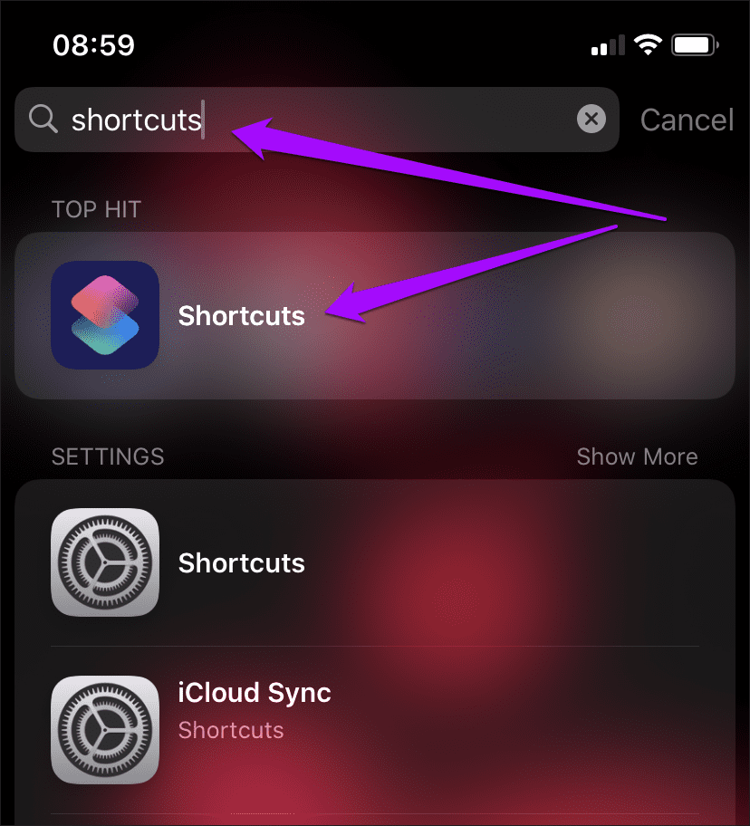 Шаг 1: Откройте приложение «Ярлыки».
