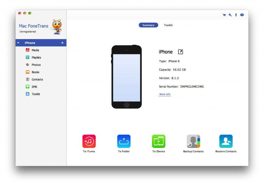 Как следует из названия, сайт macx Медиатранс представляет собой легкий, быстрый менеджер данных для iPhone, который позволяет пользователям делать бэкапы (резервные копии данных), передавать фотографии, музыку, видео, книги, голосовые заметки, подкасты, iTunes U, и т. д. между устройствами iOS и Mac в двух направлениях.