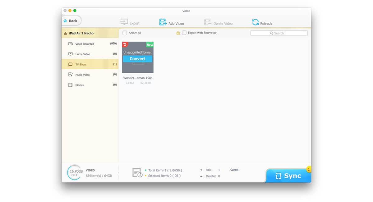 Что особенного, macx Медиатранс разработан со встроенным видео-конвертером, который будет автоматически конвертировать формат видео и сжимать размер, чтобы сделать их совместимыми с вашим устройством Apple без проблем. Нет необходимости использовать какие-либо дополнительные программы видео конвертера.