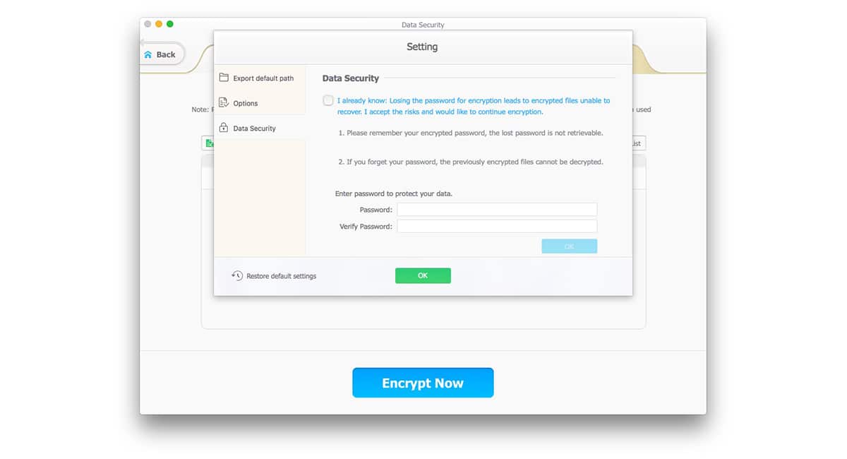 Наконец, MacX MediaTrans позволяет безопасно сохранять файлы на вашем Mac с шифрованием паролей.