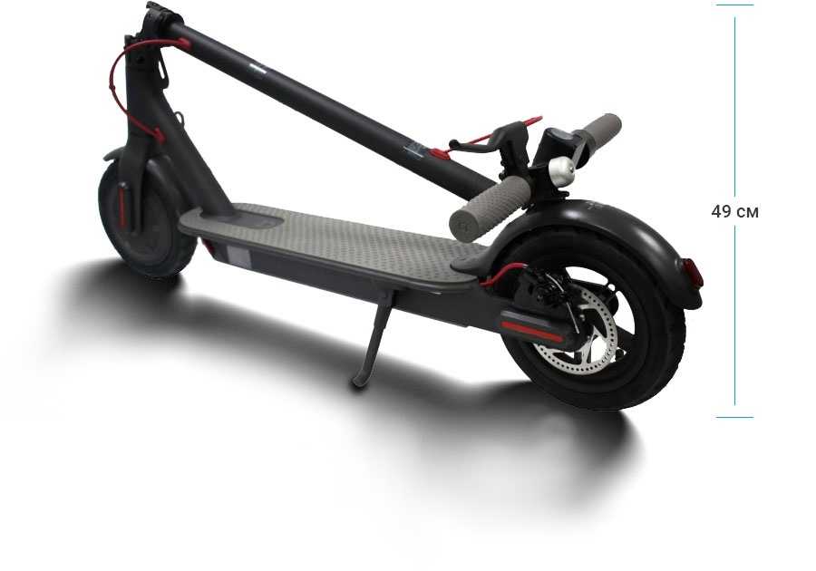 В сложенном состоянии самокат имеет следующие размеры: длина 108 см, ширина 43 см, высота 49 см. Mi Scooter 1S весит 12,5 кг и занимает мало места, его удобно носить в руке. Он может поместиться в багажнике небольшого автомобиля, спокойно пролезет в двери общественного транспорта или двери лифта.