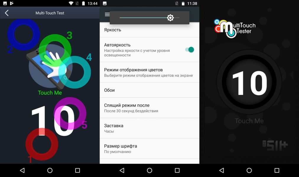 Программы тестеровщики такие, как AntTuTu Tester и MultiTouch Tester сумели распознать десять одновременных нажатий на сенсорном экране. Уровень подсветки можно регулировать вручную или выставить автоматически. При минимальной подсветке экрана вполне будет комфортно читать в темноте, а на максимальной яркости изображения удается рассмотреть необходимую информацию даже при солнечном свете.