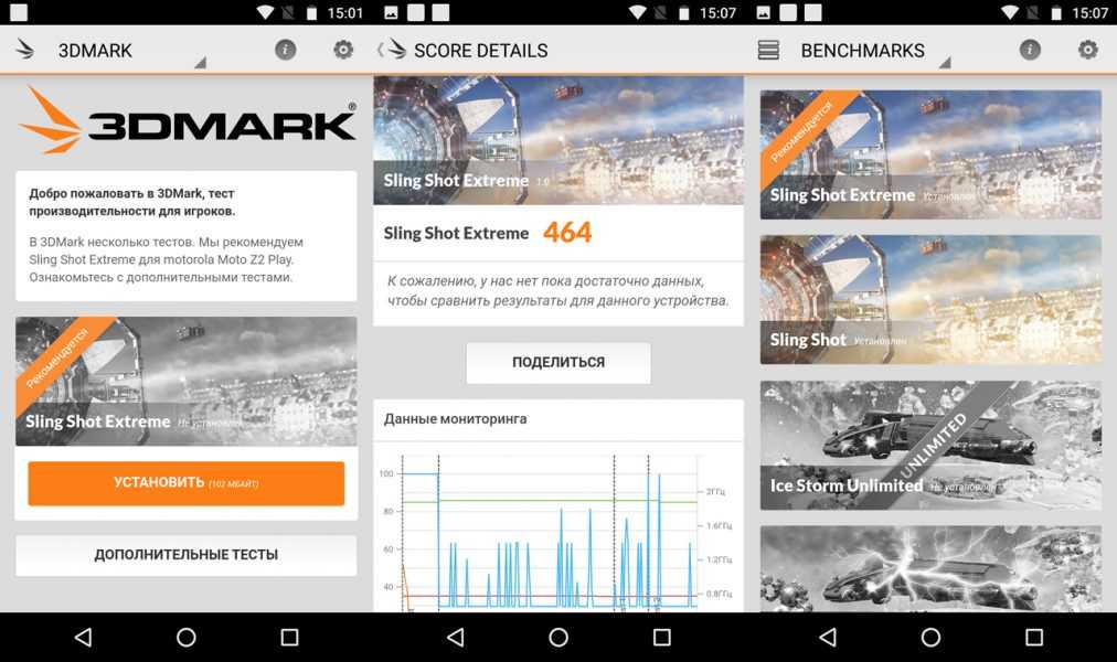 На основных синтетических тестах Moto Z2 Play получил довольно неплохие, но средние результаты. На настройках High Performance и High Quality визуального теста Epic Citadel частота кадров практически была неизменной.