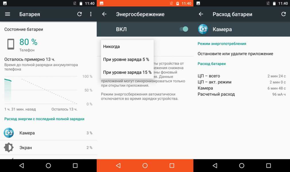 Режим энергосбережения, как обычно, активируется, либо по желанию, либо автоматически, при уровне заряда батареи 5% или 15%.