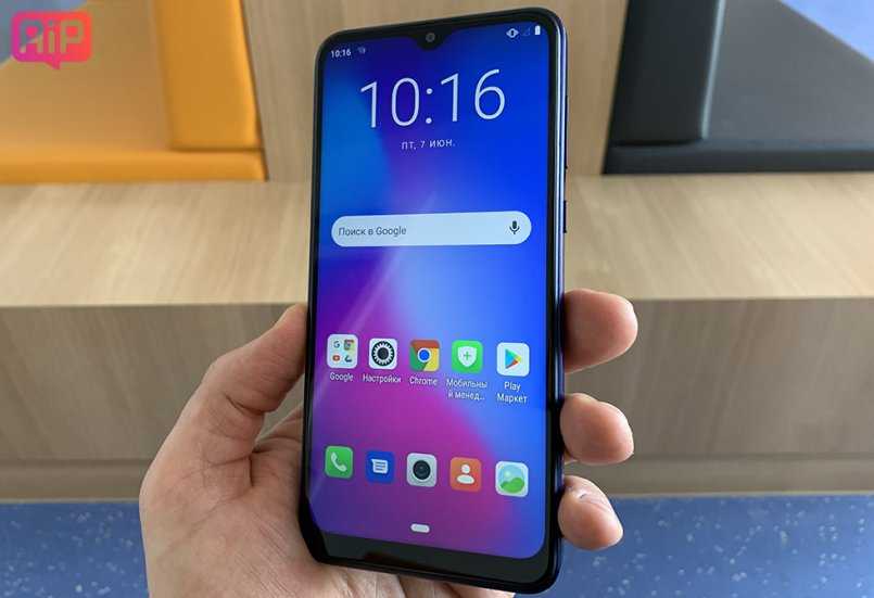 Боковые и верхняя рамки дисплея очень узкие. От верхней рамки остался компактный каплевидный вырез, в котором располагается фронтальная камера. Вырез оформлен качественно, с плавным переходом. Нижняя рамка относительно широкая. В первые дни и вовсе возникало ощущение, что нижняя рамка слишком шире по сравнению с другими.