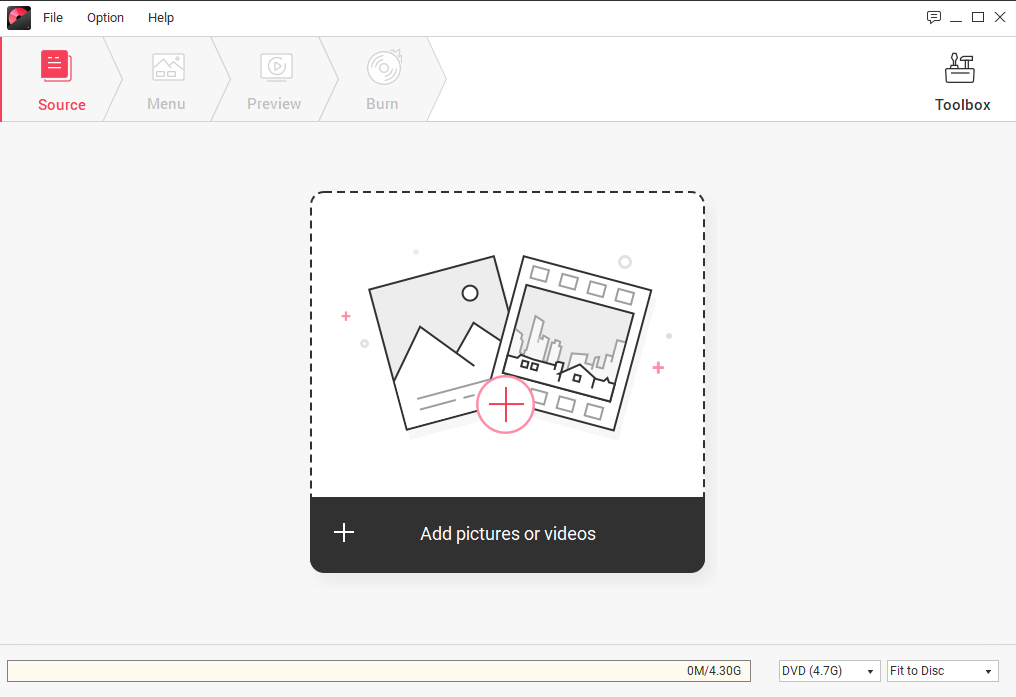 При входе вы увидите поле с описанием » добавить фото или видео “, Вариант, с помощью которого вам нужно будет добавить Wondershare DVD Creator для этого содержимого.