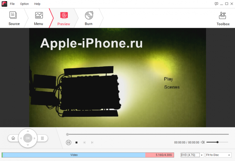 Третий этап (Preview) — предпросмотр для оценки правильности структуры меню. Качество, к сожалению, оценить не получится, для этого нужно записать диск.