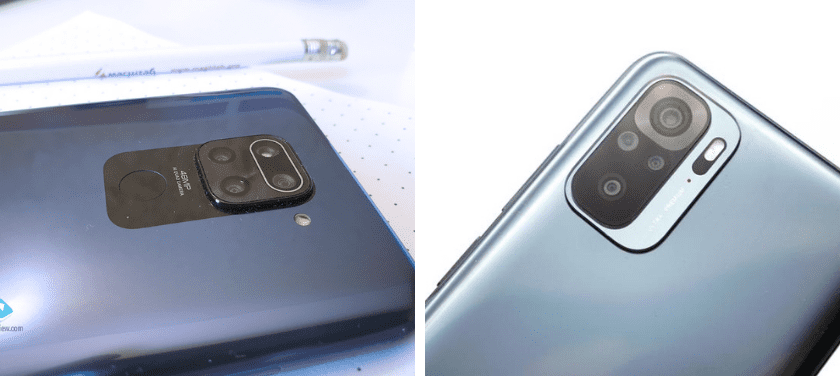 Redmi Note 9 (слева) и Redmi Note 10 (справа). Блоки фотокамер.