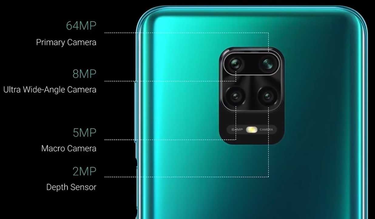 Модуль с четырьмя камерами включает в себя сверхширокоугольный объектив на 8 МП, датчик глубины на 2 МП и довольно сомнительный макросенсор на 2 МП. Однако на этот раз основным объективом является 64-мегапиксельный Samsung GM2. Он отличается от 64-мегапиксельной камеры предыдущей модели. Интересно, что Xiaomi представила еще более высокий уровень качества камеры со смартфоном под названием Redmi Note 9 Pro Max, который оснащен 64-мегапиксельным сенсором и более быстрой зарядкой.