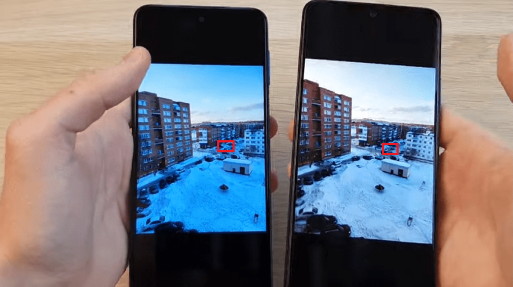 Для примера приведем следующий опыт. Один из видеоблогеров запечатлел на «продвинутые» Редми Ноут вид из своего окна. Оба снимка были сделаны в максимально возможном разрешении (108 и 64 Мпикс соответственно). Затем он значительно увеличил фотографии на экранах своих смартфонов. Снимок автомобиля, стоявшего далеко во дворе, предсказуемо оказался более четким на Redmi Note Pro 10-го поколения. У его предшественника получалось выдать меньше мелких деталей.