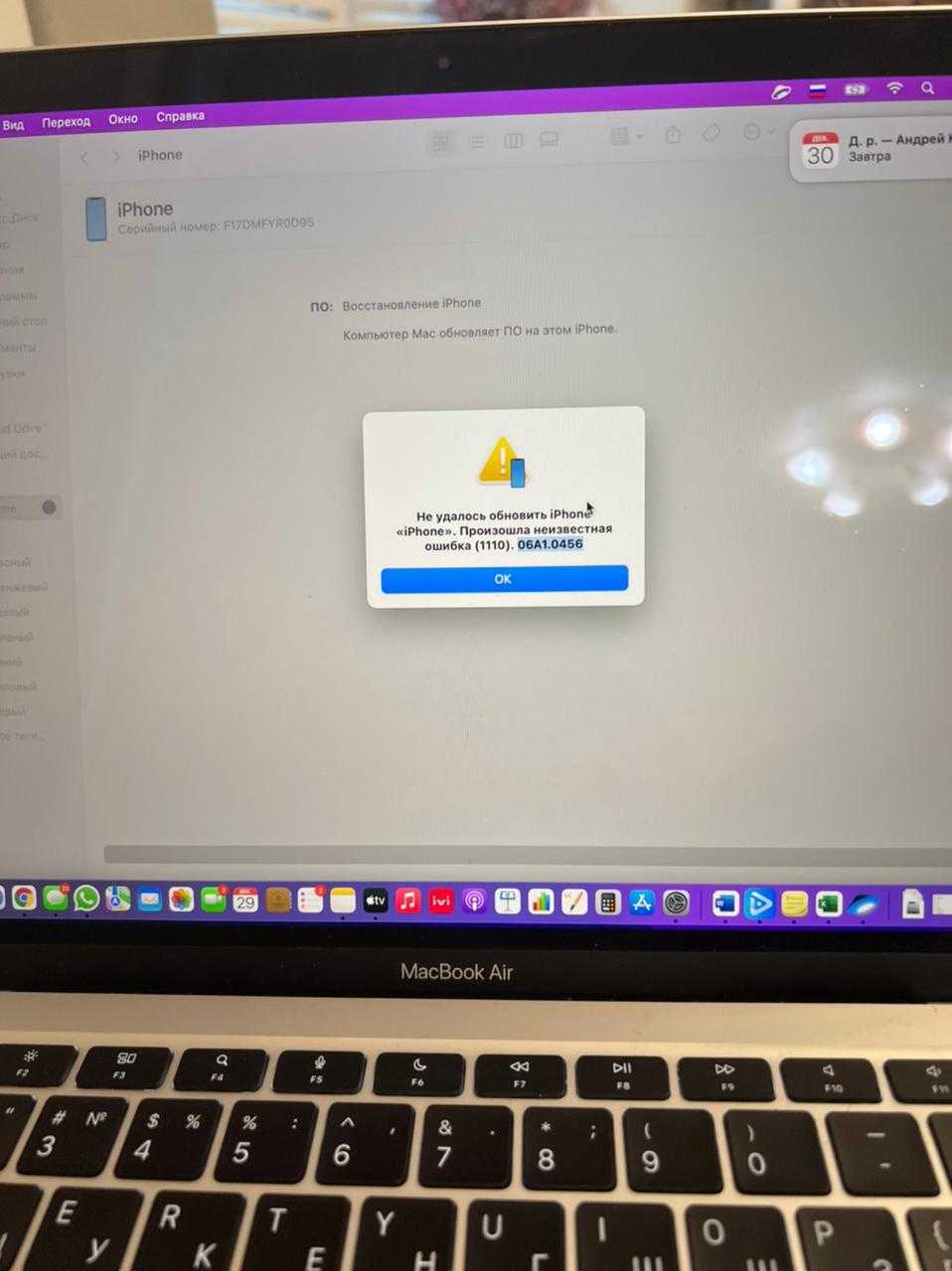 ошибка 1110 в iTunes при обновлении iphone 12 Pro