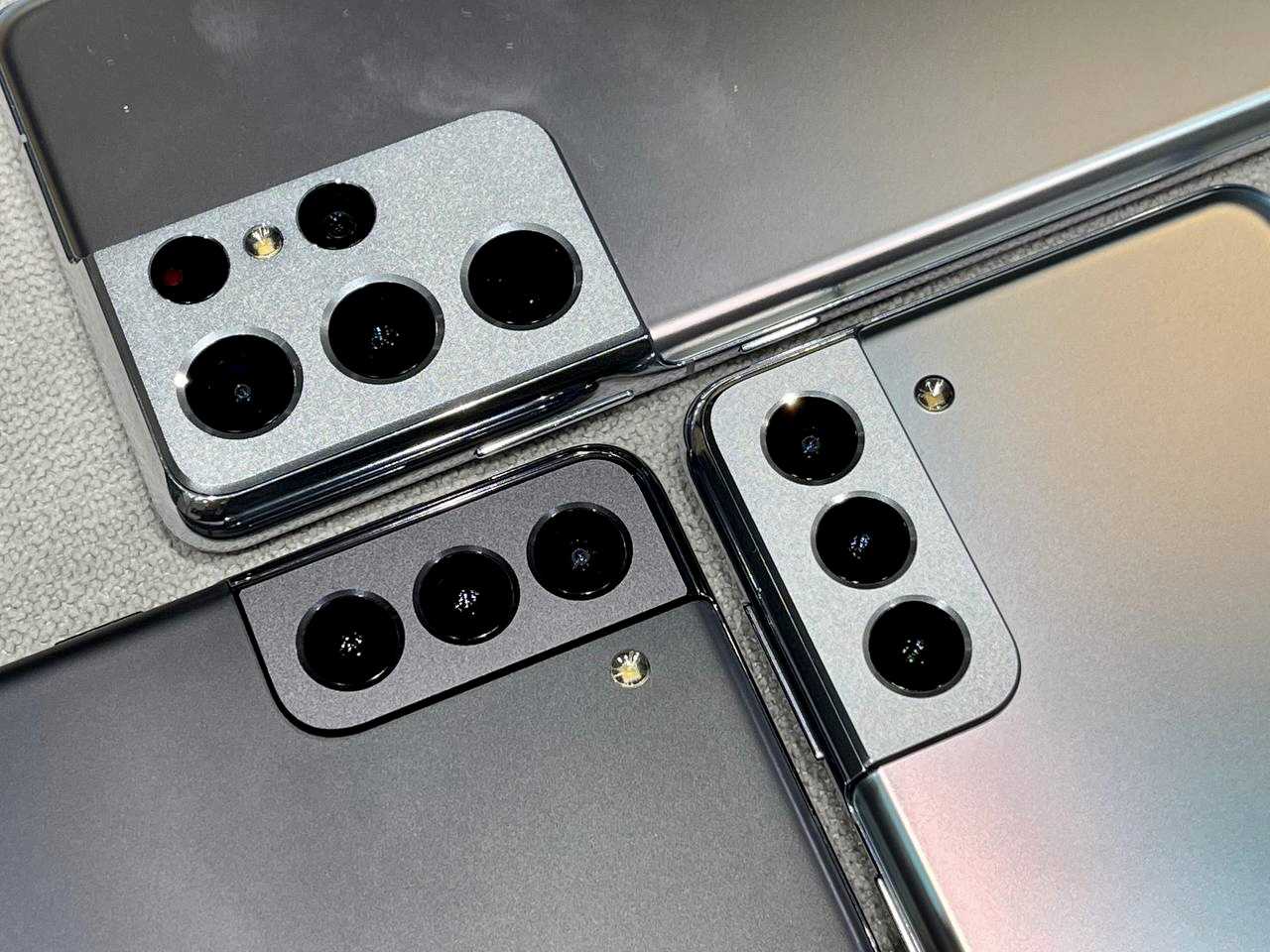Galaxy S21 и Galaxy S21+. Здесь три фотомодуля: широкоугольный на 12 МП, сверхширокоугольный на 12 МП и телефото на 64 МП.