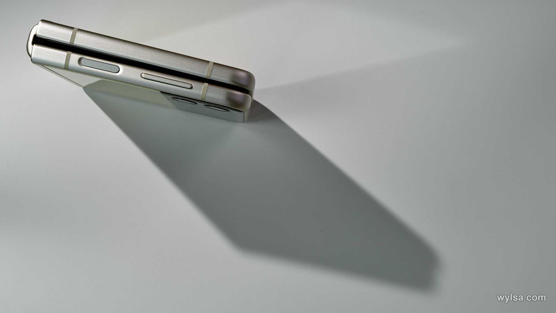 Благодаря прочной алюминиевой рамке на торцах смартфона в закрытом виде между его половинками остается небольшое пространство. Во время теста это не вызвало проблем, хотя сначала казалось, что в «щель» будет попадать пыль и прочие мелочи. По размеру закрытый смартфон не больше привычной раскладушки или пудреницы.