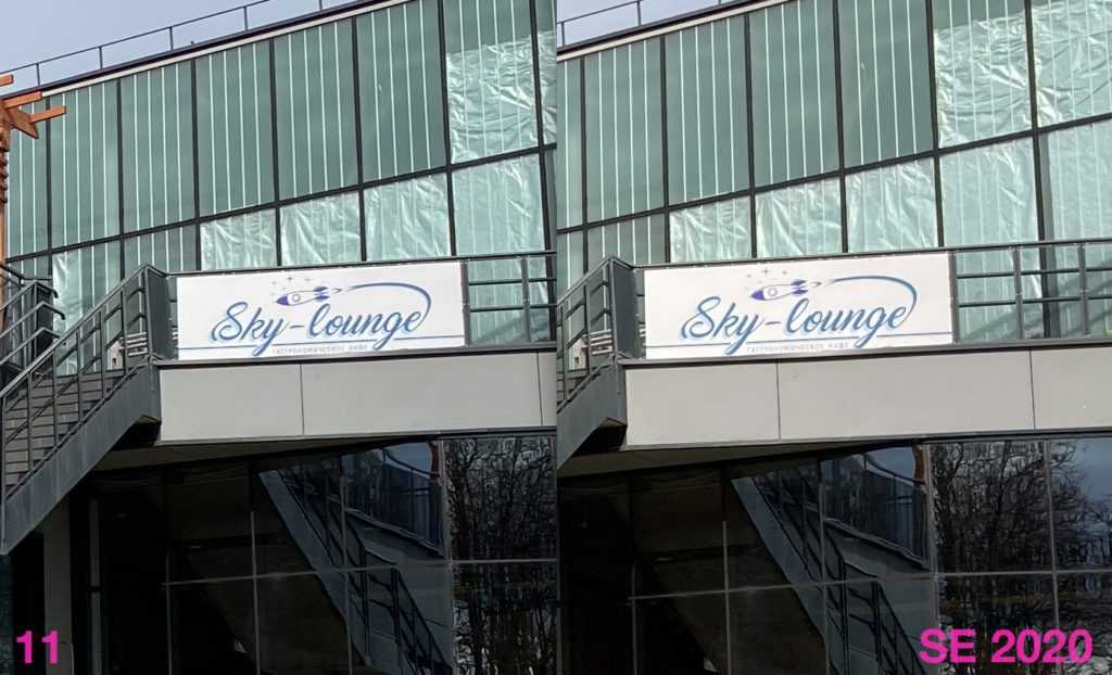 Невооружённым взглядом видно, что картинка с SE 2020 более тёмная и рыхлая. 11-ый лучше обрабатывает видеопоток. Однако касается это лишь ночной съёмки