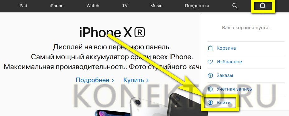 Снова перейти на главную страницу Apple apple.com и вызвать окошко авторизации на сайте.