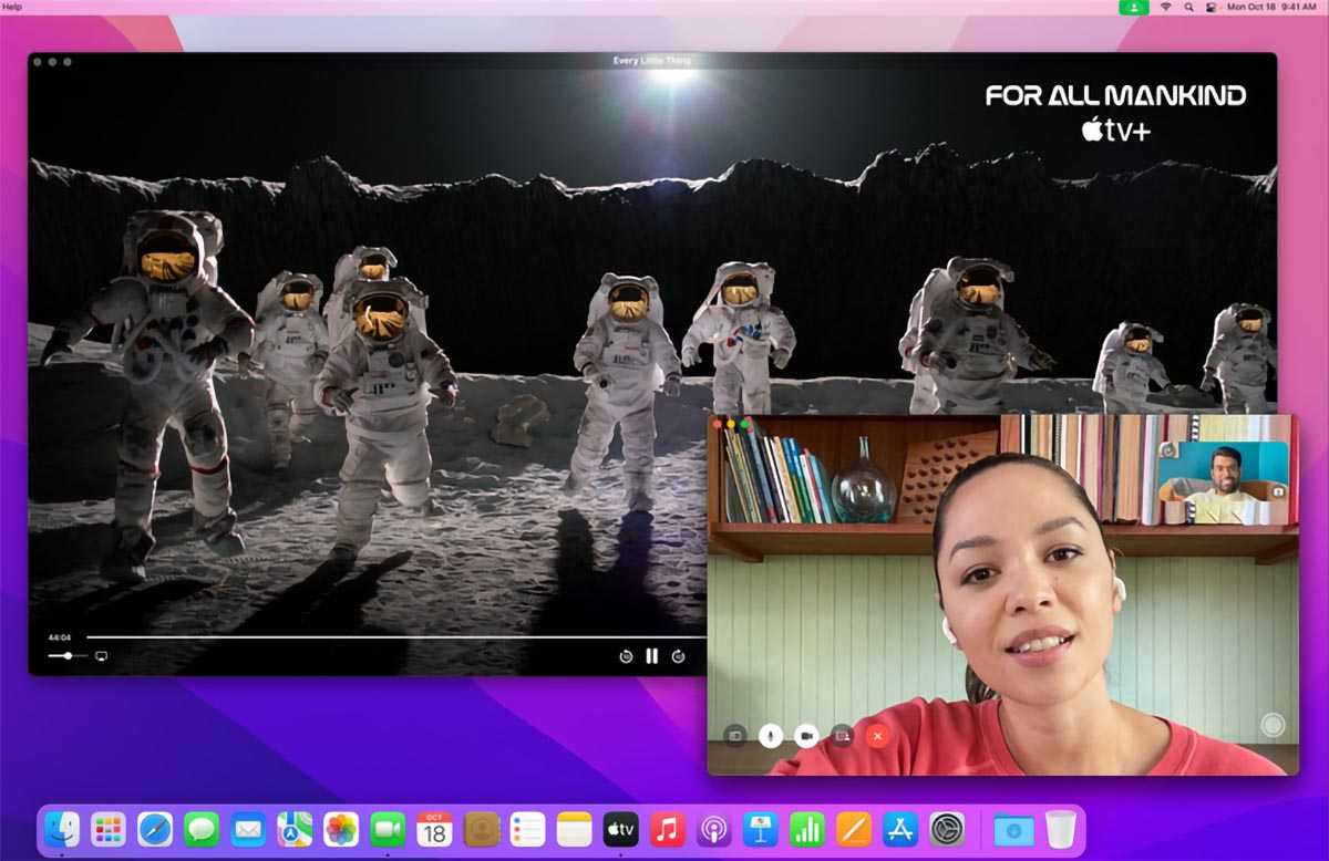 ■ После начала воспроизведения каждый из собеседников сможет управлять просмотром, ставить видео на паузу или перематывать. Воспроизведение будет синхронизировано у всех участников. При этом общение по FaceTime не останавливается, можно сразу же обсуждать увиденное и делиться впечатлениями. Система будет самостоятельно подстраивать громкость голоса под громкость воспроизводимого контента.