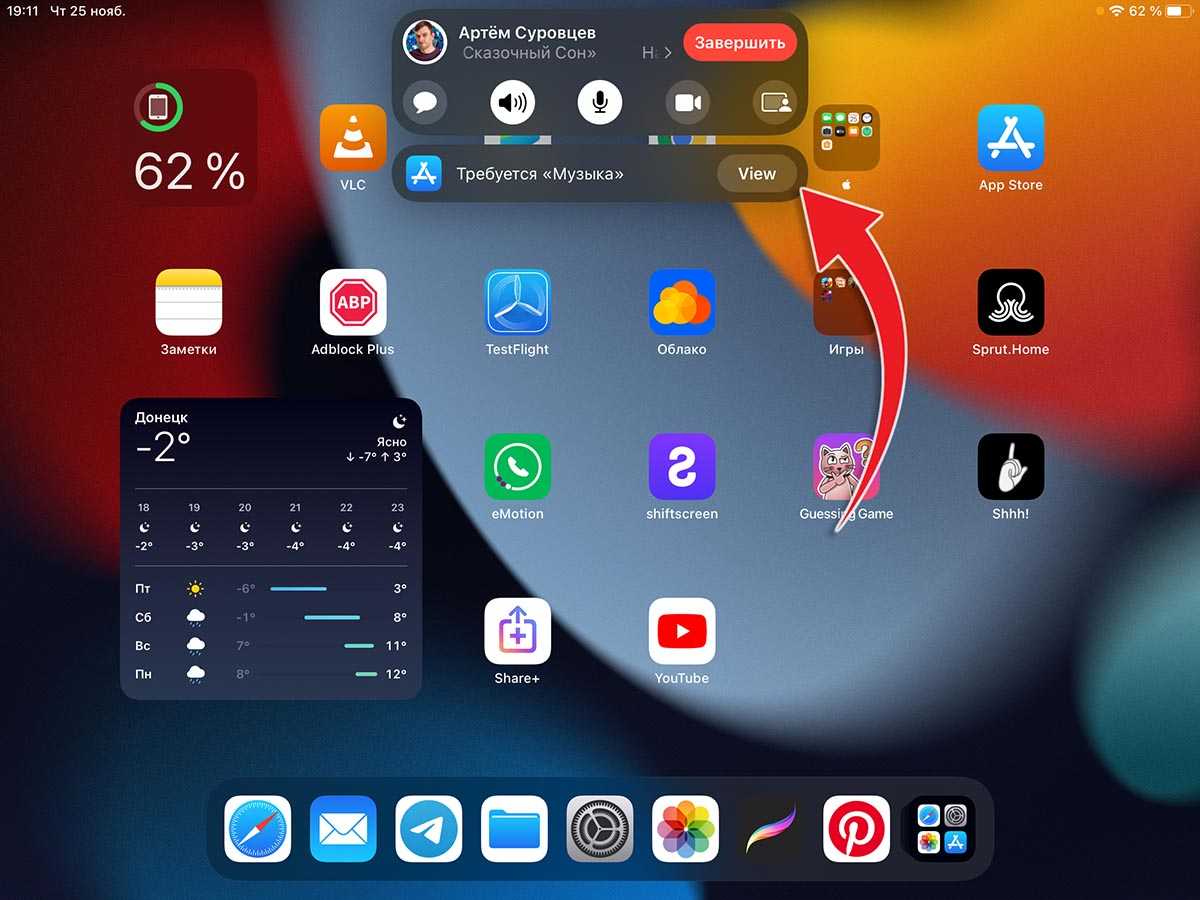 ■ Во время видеовызова сверните приложение FaceTime и запустите программу с поддержкой видео-SharePlay.