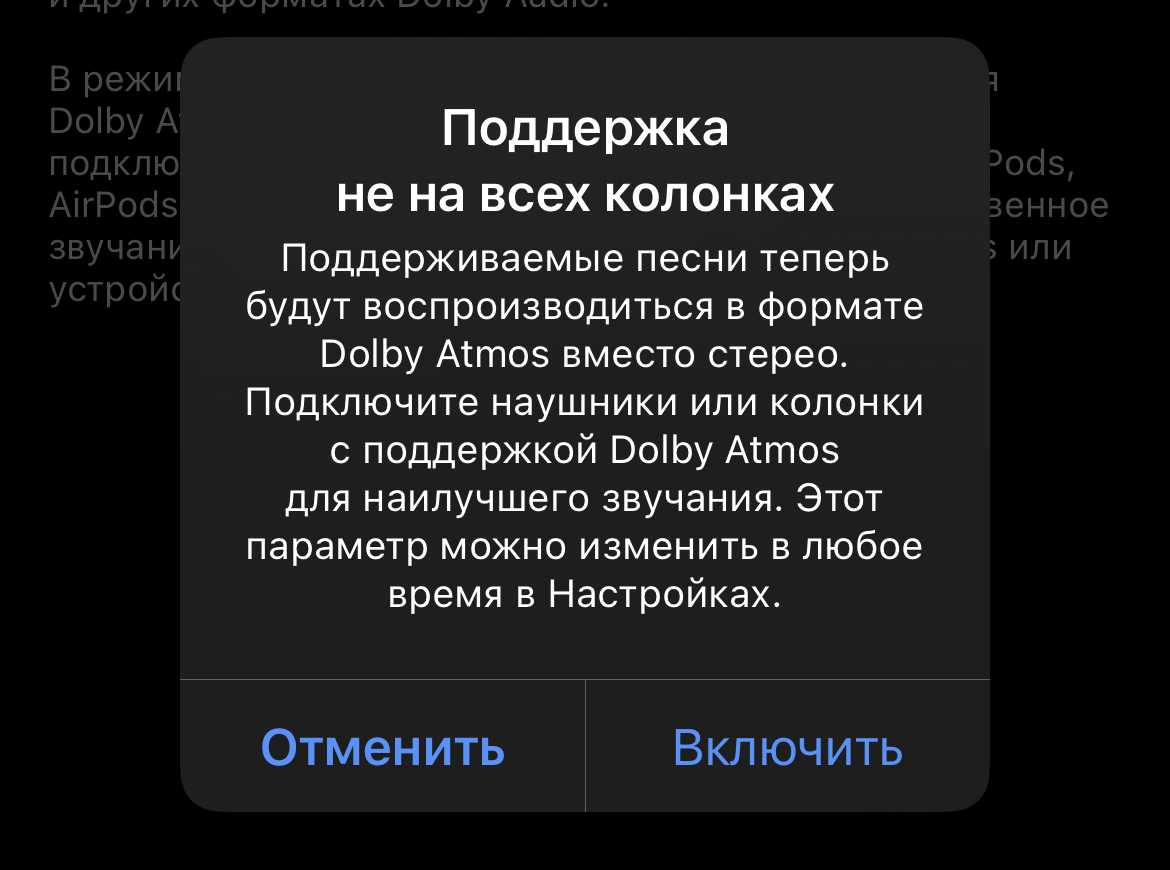 Dolby Atmos в Apple Music включится автоматически, если у вас AirPods, AirPods Pro, AirPods Max, BeatsX, Beats Solo3 Wireless, Beats Studio3, Powerbeats3 Wireless, Beats Flex, Powerbeats Pro и Beats Solo Pro.