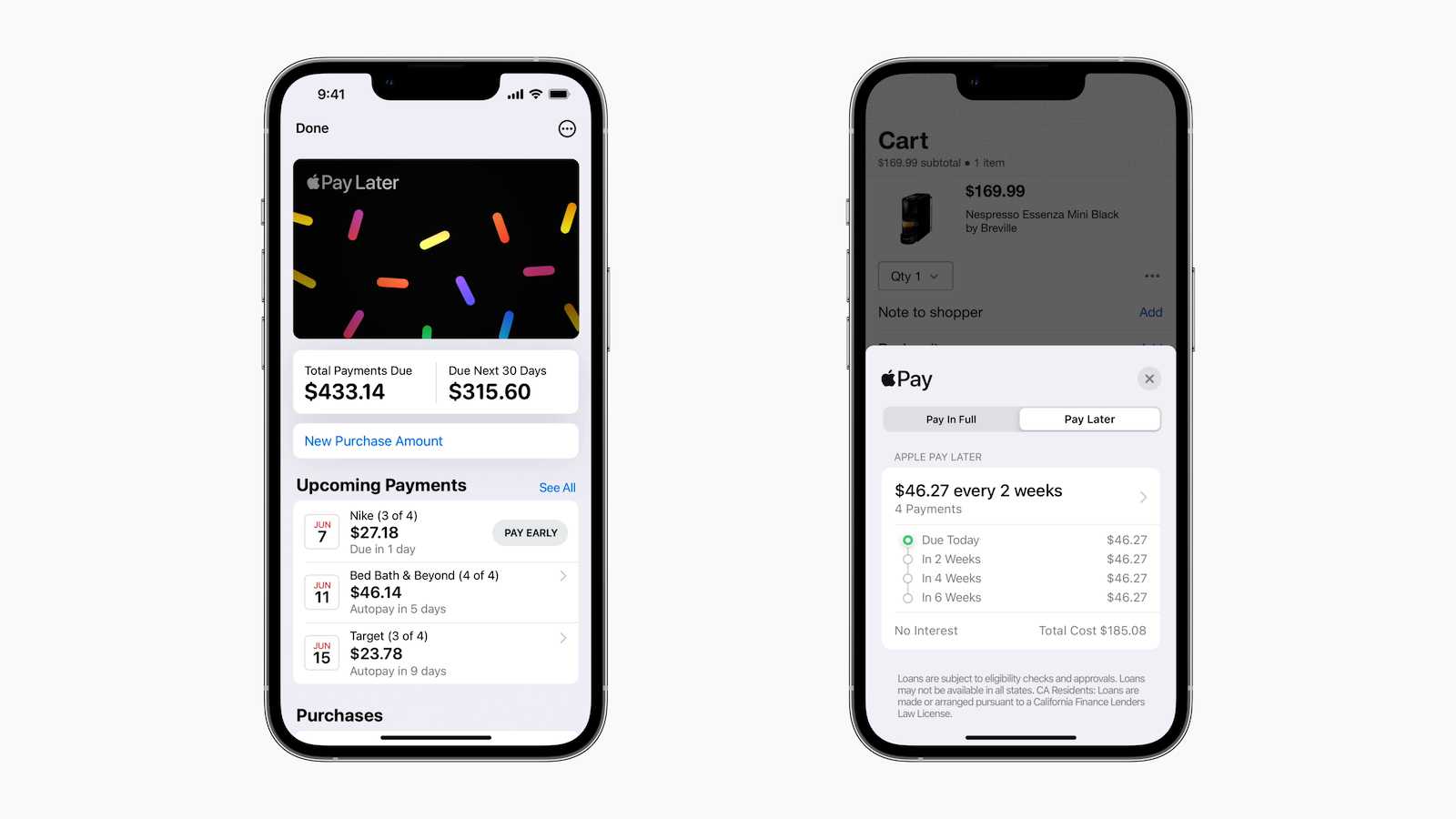 Users in the U.S. can use Apple Pay Later to split the cost of an Apple Pay purchase into four equal payments spread over six weeks, with zero interest and no fees. Apple Pay Later is built into the Wallet app, where users can easily track and repay Apple Pay Later payments. Users can apply for Apple Pay Later when they are checking out with Apple Pay, or in the Wallet app. Apple Pay Later is available everywhere Apple Pay is accepted online or in-app, using the Mastercard network.