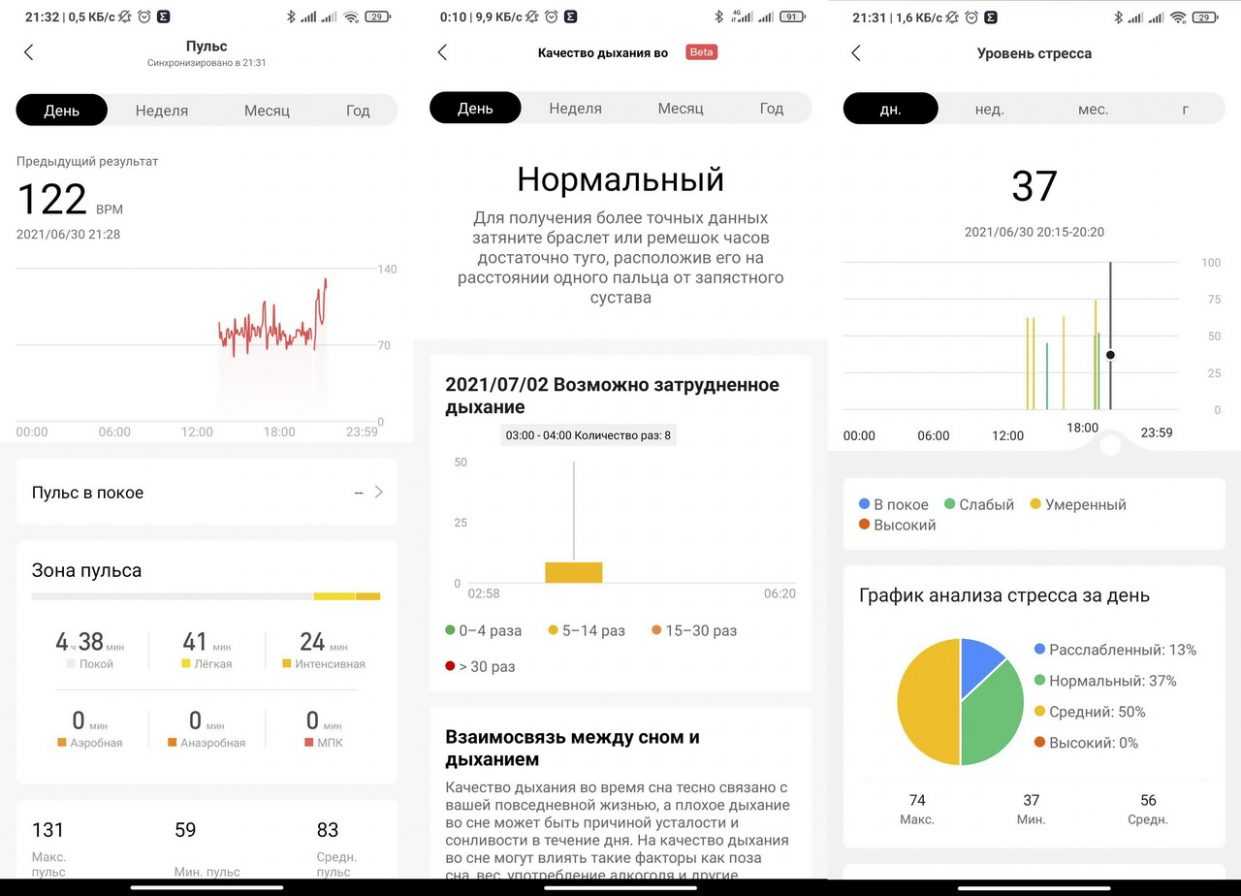 Благодаря подробным, удобно визуализированным отчетам приложения-компаньона Zepp можно с неплохой точностью контролировать текущее состояние здоровья.