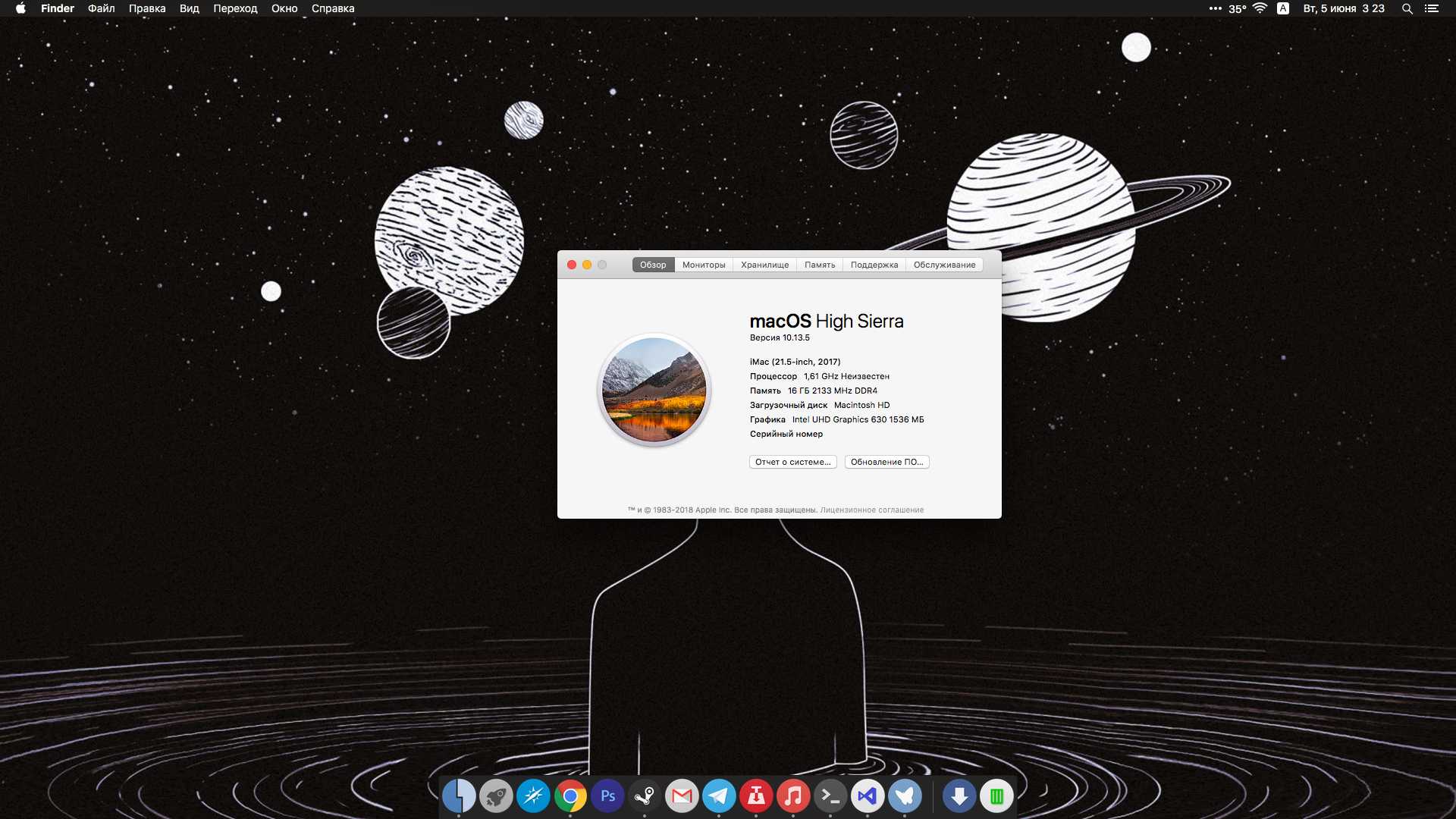 Таким образом был установлен hackintosh 10.13.4, который вскоре, без каких либо проблем, обновился до 10.13.5.