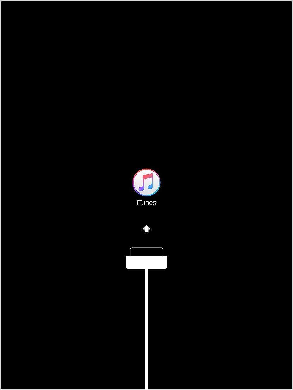 3. Перезапустите iPad (все еще подключенный), одновременно нажав и удерживая кнопки питания («Режим сна / Пробуждение») и «Домой». Продолжайте удерживать их, пока не увидите экран режима восстановления. Возможно, вам нужно держать их нажатыми дольше, чем вы думаете: экран станет черным, а затем через несколько секунд появится логотип Apple, но вам нужно держать кнопки в течение еще 10 секунд или около того, пока iPad не выйдет в режим восстановления.