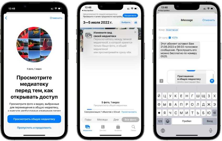 Apple включила функцию «Общая медиатека», которая была представлена на главной презентации WWDC22. Чтобы активировать общую медиатеку, необходимо пройти в Настройки — профиль Apple ID — iCloud — Фото — Медиатека.