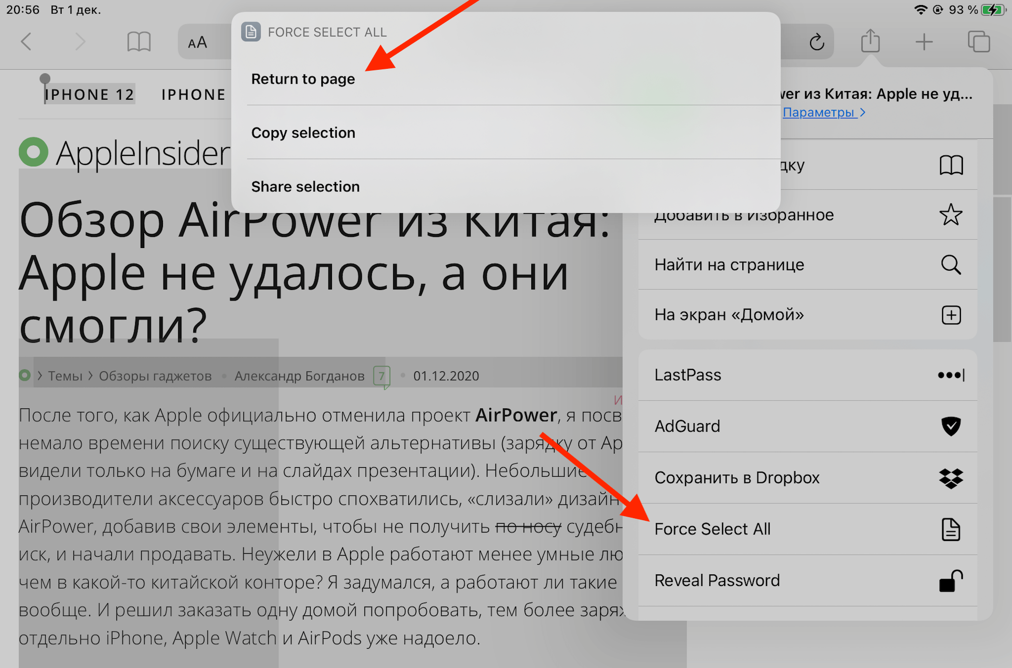 iOS очень удобна. Высокий уровень продуманности операционной системы Apple всегда заставлял меня удивляться, почему точно так же нельзя было сделать на Android. Возврат к верхней части страницы по нажатию на строку состояния, умная зарядка, перемещение к любой части страницы с помощью бокового ползунка — именно эти и многие другие примочки и отвечают за формирование положительного опыта использования. Но кое-чего до сих пор не хватало даже iOS. Например, выделения текста на всей странице целиком.