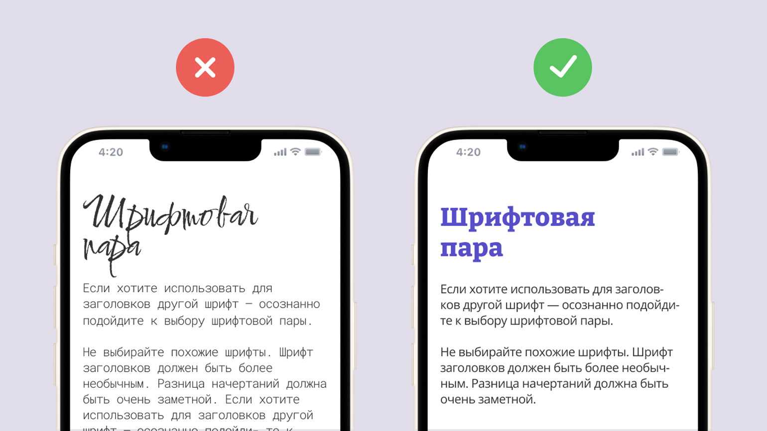 Если вы хотите использовать для заголовков один шрифт, а для основного текста другой, осознанно подойдите к выбору. Вот несколько правил, которые помогут вам подобрать шрифтовую пару: