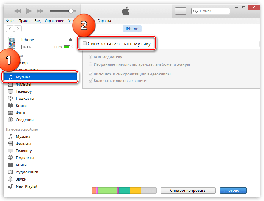 Ручная синхронизация только определенных песен и списков воспроизведения
