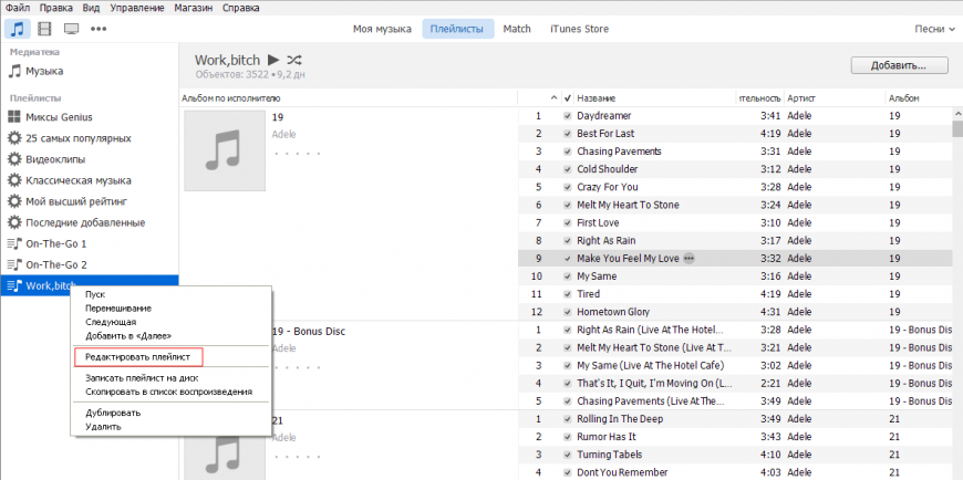 Каждый созданный вами список воспроизведения добавляется в вашу библиотеку и отображается в меню в левой части окна iTunes. Если вы хотите изменить композицию, щелкните правой кнопкой мыши и выберите «Изменить». Вы можете изменить порядок воспроизведения дорожек, упорядочив их обычным методом перетаскивания дорожек с помощью мыши. После синхронизации с iPhone/iPad порядок воспроизведения будет сохранен.