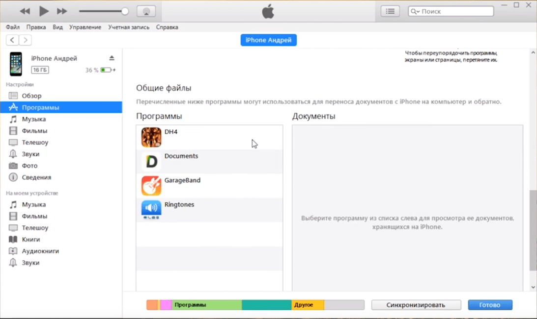 Соответственно, когда вы подключаете Айфон к программе, происходит автоматическая синхронизация всех данных, кроме папки с рингтонами.