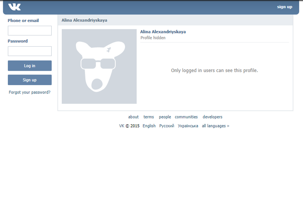 Стоит отметить, что это сработает лишь в том случае, если страница человека открыта не только для пользователей определенной социальной сети, но и для поисковых систем. В противном случае при переходе вы увидите картину, похожую на ту, что приведена ниже.