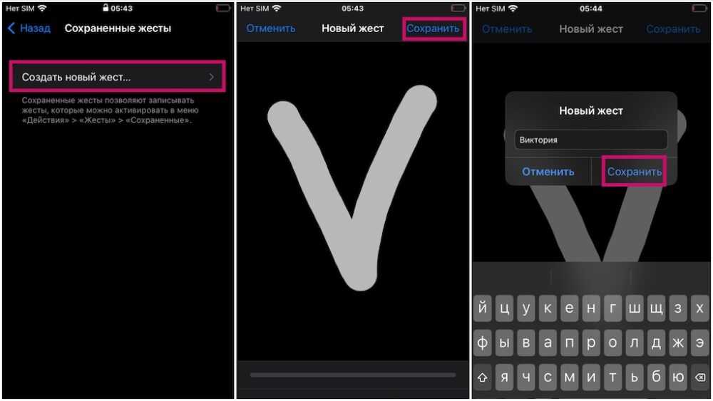 - Коснитесь или проведите по экрану, чтобы создать собственный жест.