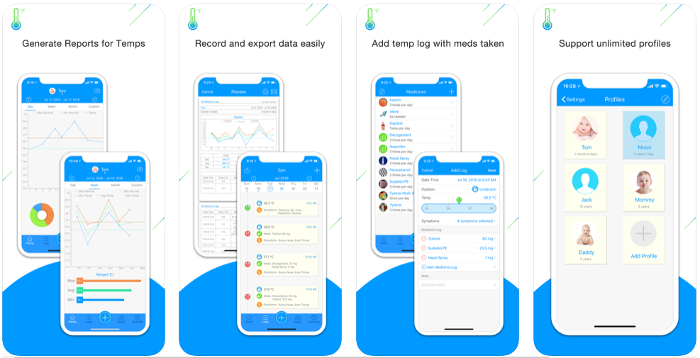 Это чрезвычайно полезное приложение для измерения температуры. Большим преимуществом, которое он предлагает, являются анализ, отчеты и графика вашей ситуации. Например, человеку, у которого проявились симптомы болезни, очень полезно знать визуально эволюция вашего государства. Приложение отслеживает прогресс, собирая всю информацию.
