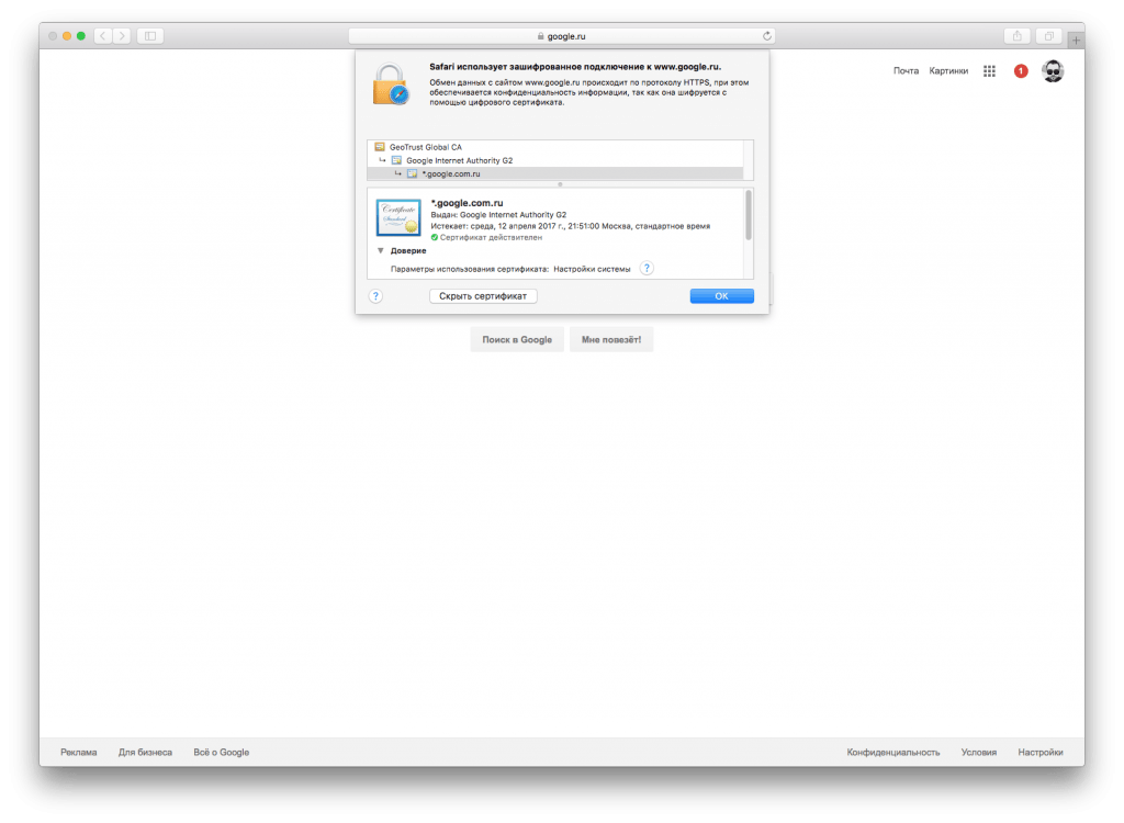 Во-первых, убедитесь, что вы действительно пытаетесь попасть на сайт, в безопасности которого абсолютно уверены. Иногда мошенники используют в названии адреса Unicode-алфавит или похожее сочетание букв. Например, буквально сегодня Google подала в суд на человека, которому принадлежит домен ɢoogle.com, где первая «ɢ» это не буква, а символ. Поддельный сайт использовался для рассылки спама и зараженных файлов.