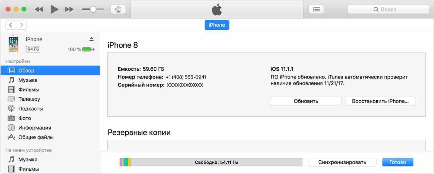 Обновление ПО iPhone, iPad или iPod touch в iTunes на ПК