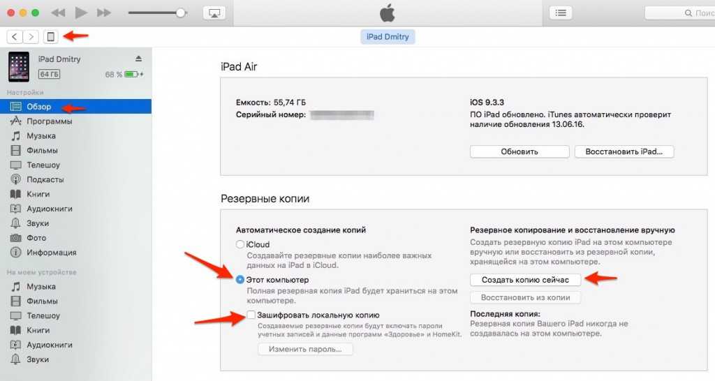 Прежде чем приступать к обновлению iPad, необходимо создать резервную копию данных. Бэкап можно сохранить на компьютере через iTunes или в облачном хранилище iCloud.